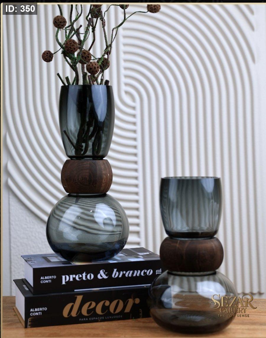 طقم فازات شفاف مع خشب