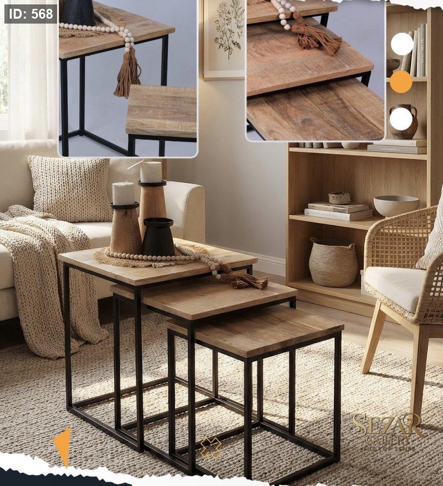 طقم سكملات ثلاثي مربع من خشب المانجا