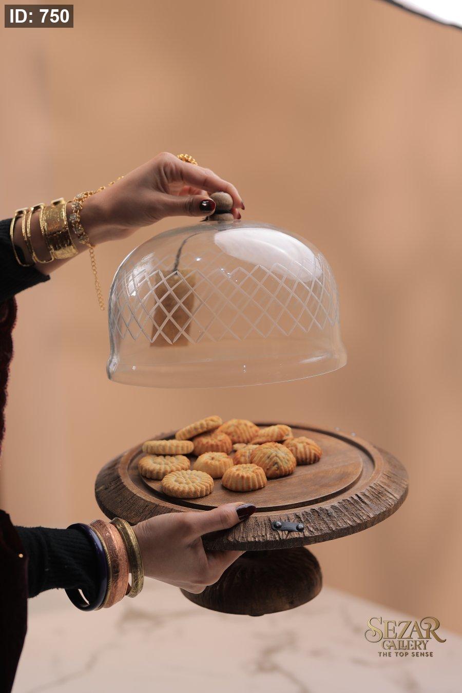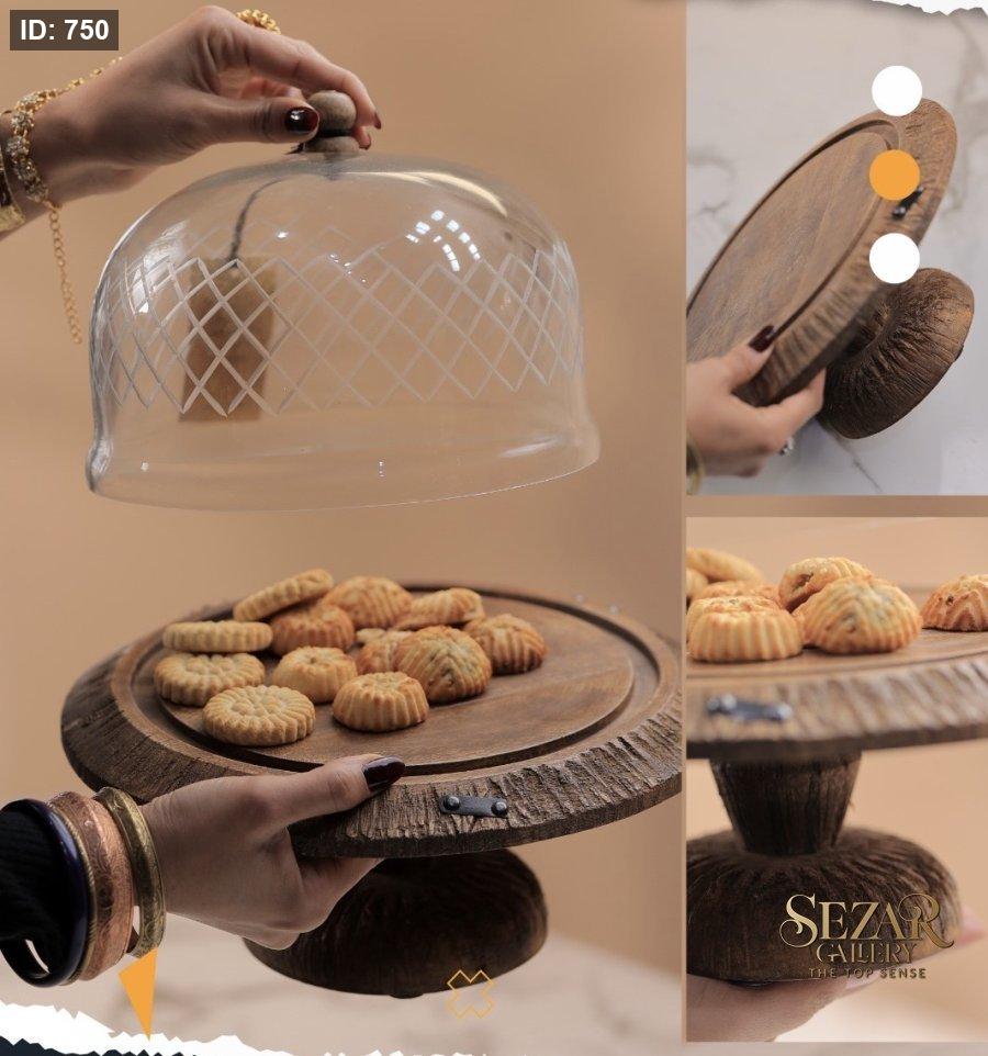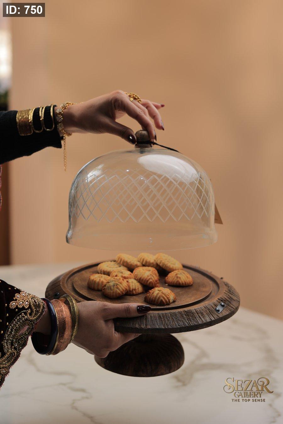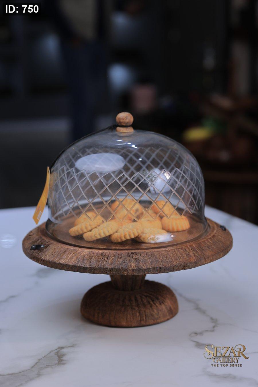 مضيفه خشبيه من خشب المانجا مع غطى زجاجي