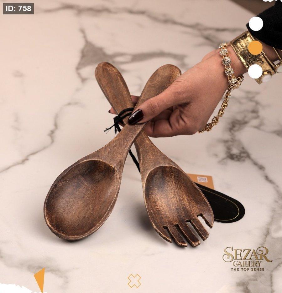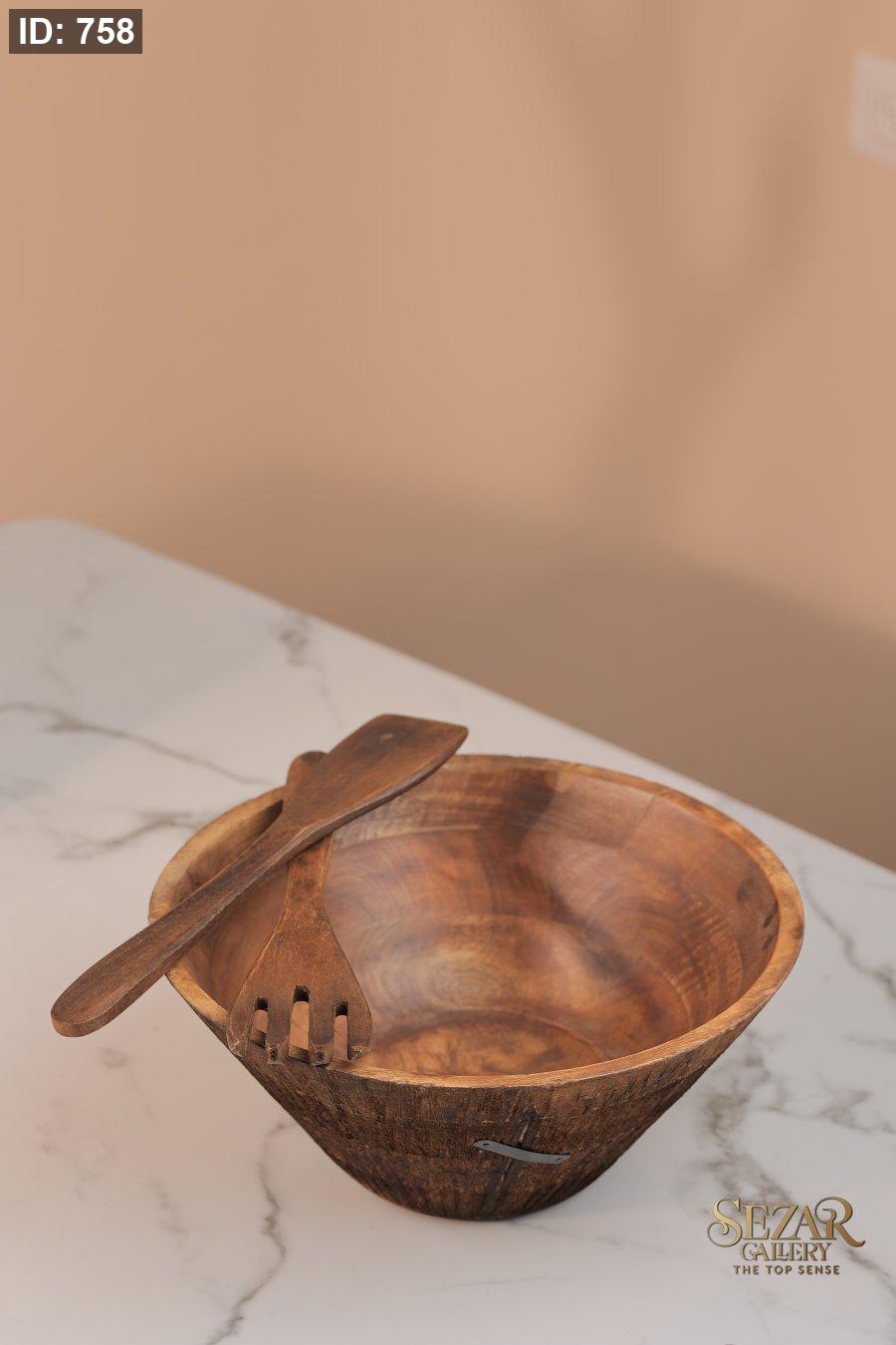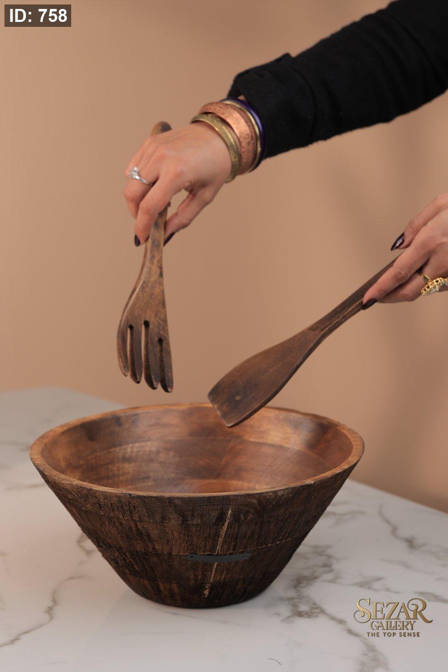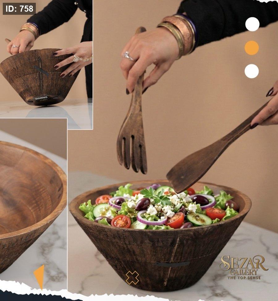 طقم جاط سلطة مع مغرفتين من خشب المانجا