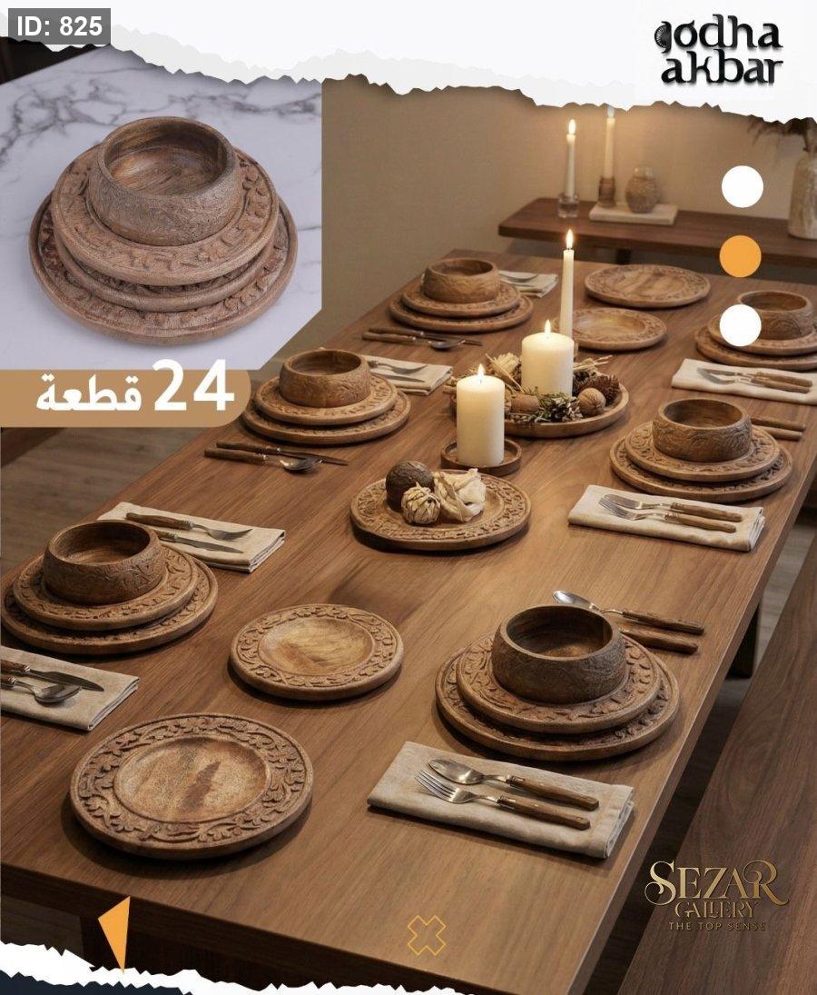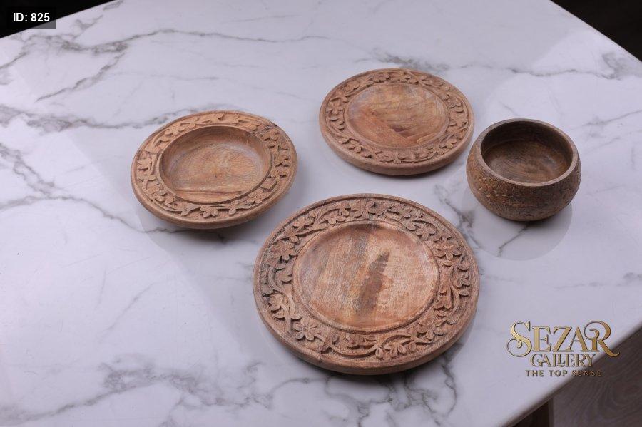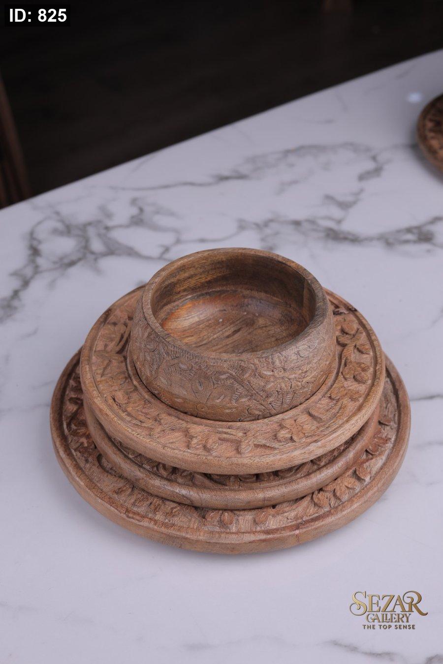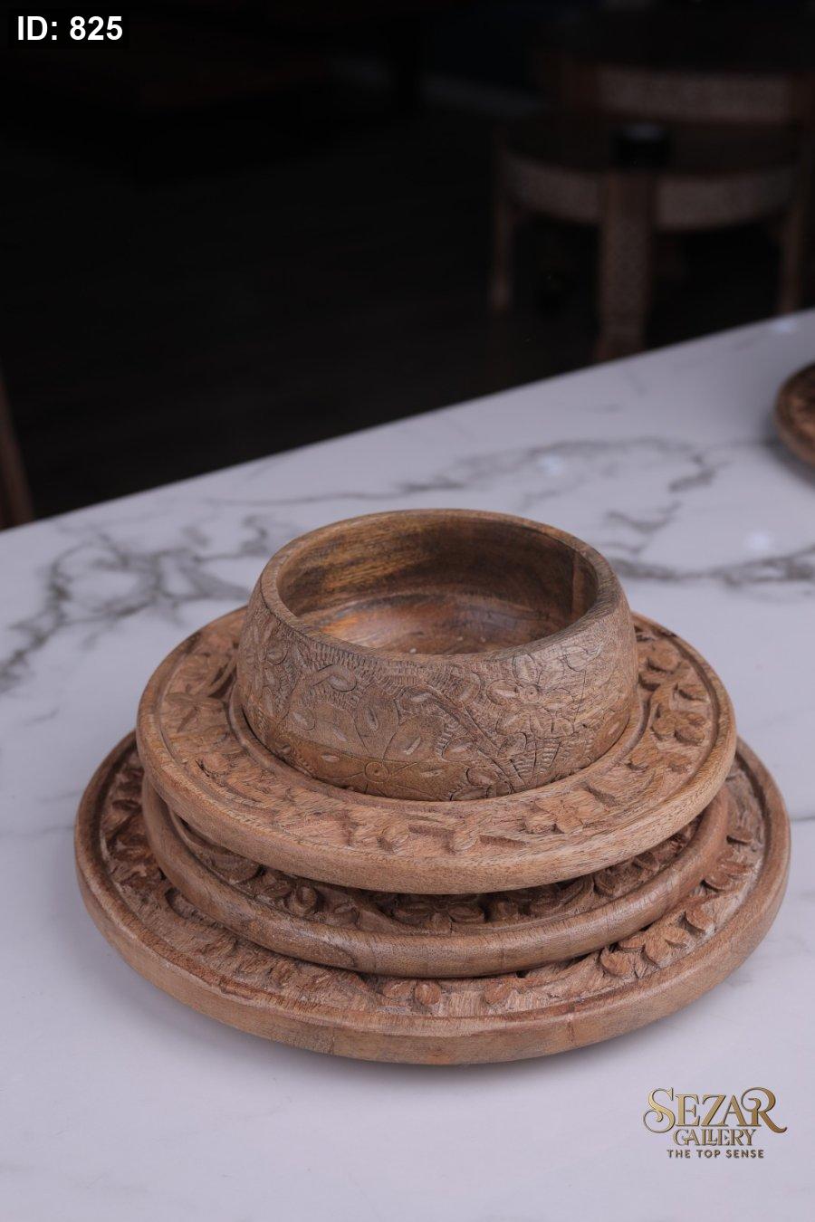 طقم صحون منحفر من خشب المانجا