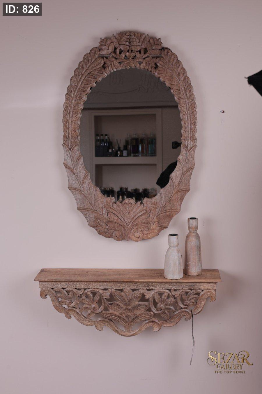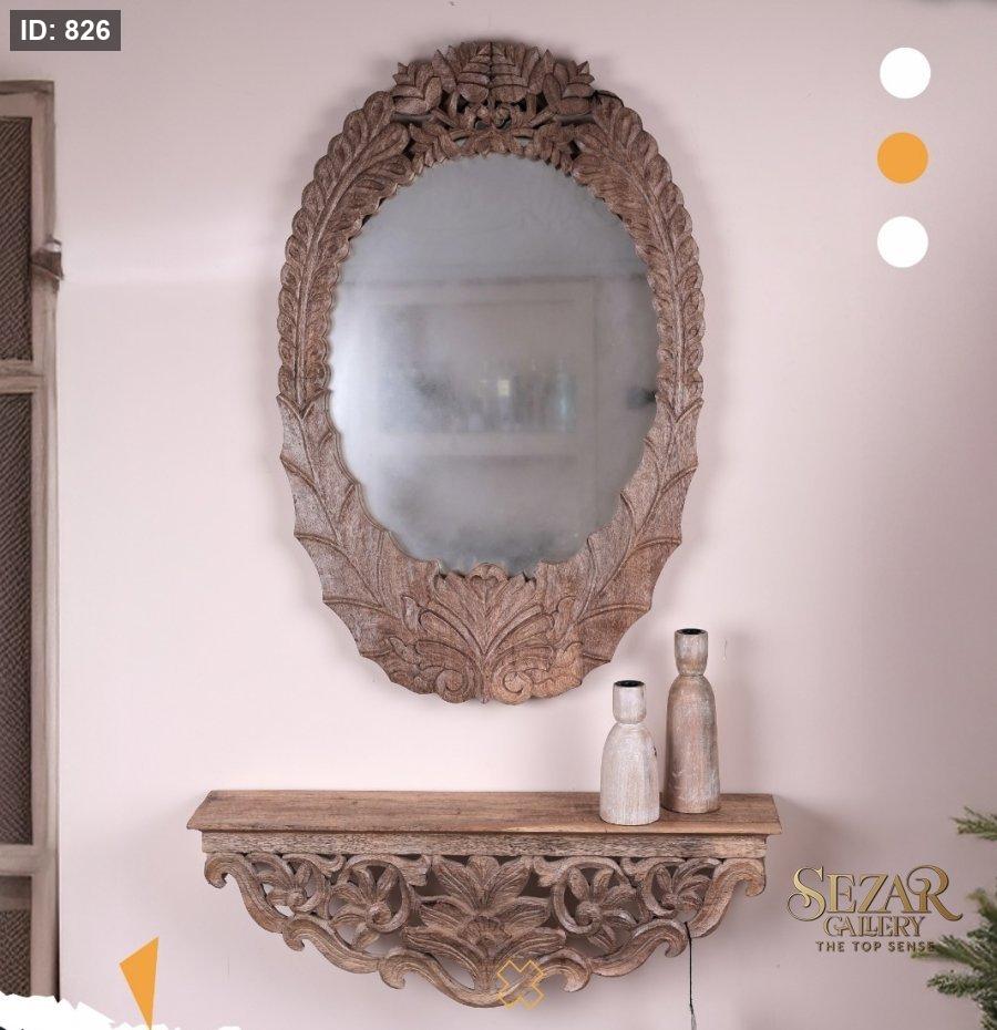 طقم مرآة محفره مع رف من خشب المانجا